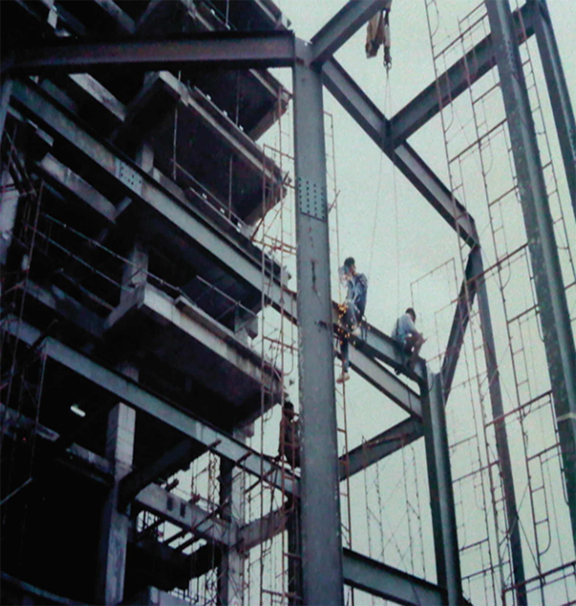 Rangka baja gedung bertingkat, gudang & pabrik, skylight + canopy tower, jembatan, rangka baja atap ru- mahan, support beam, support baja tempory, dan lain-lain.